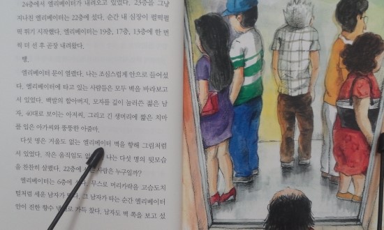 하나같이 약속이라도 한듯.. 엘리베이터 벽을 보며 서는 거였어요..
