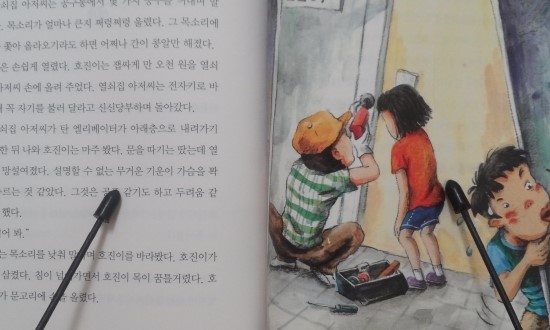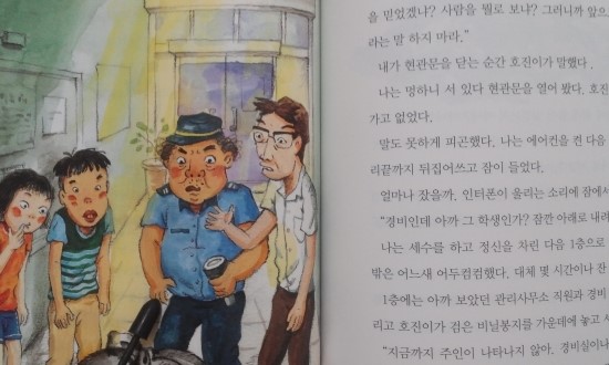 할 수 없이 6층에 호진이와 호진이 삼촌인 고슴도치 머리 남자에게 지원사격을 요청합니다.