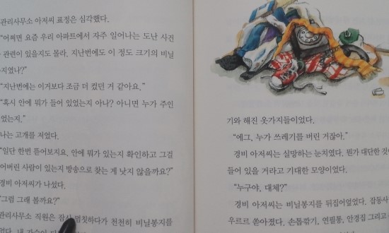 여진이는 엘리베이터에서 수상한 검은 비닐봉지를 발견합니다.