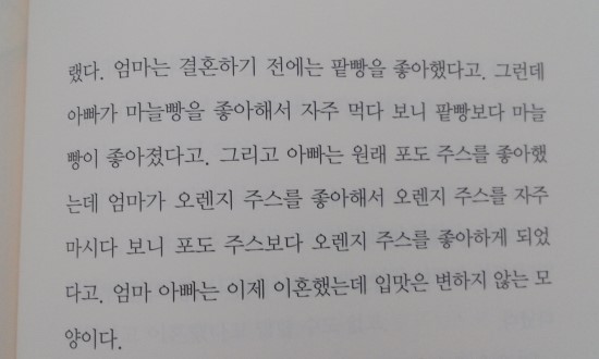 '엄마가 치약을 아무렇게나 누르는게 싫으면 아빠가 대신 짜 주면 되고, 아빠가 국부터 먹는 게 싫으면 엄마가 밥을 떠서 한입 먼저 먹여주면 되는거라구요....'