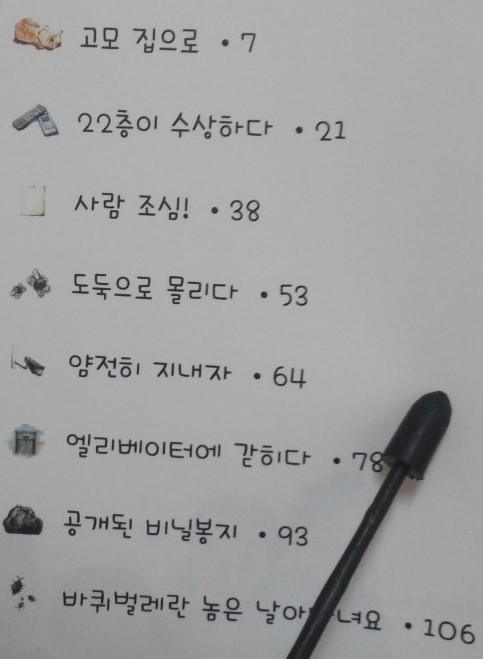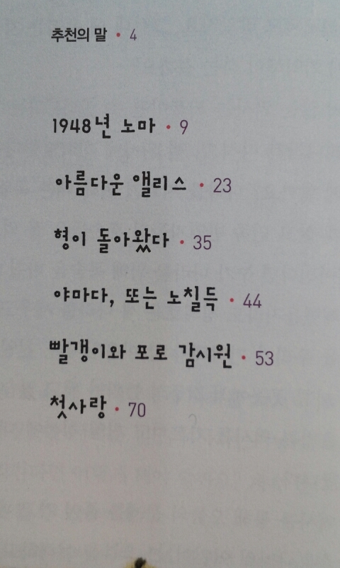 목차에요~ 글씨 동글동글하니 참 예쁘네요^^