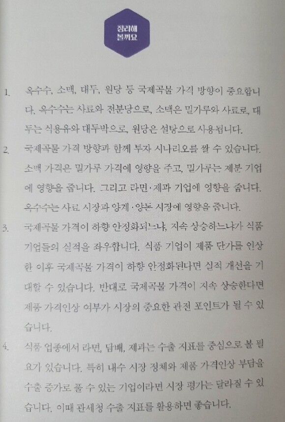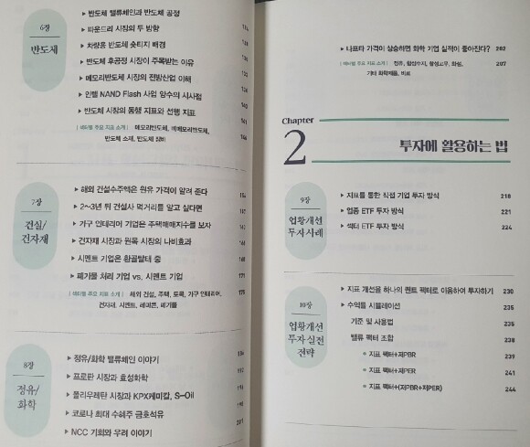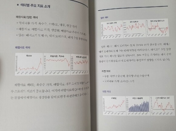 앞부분에는 식품주, 제지, 자동차, 철강, 비철, 반도체, 건설, 정유화학 섹터별로 배류체인이나 업종의 소개를 해주고, 관련된 지표는 무엇이 있으며 어떻게 해석해야할지를 알려주고 있다.