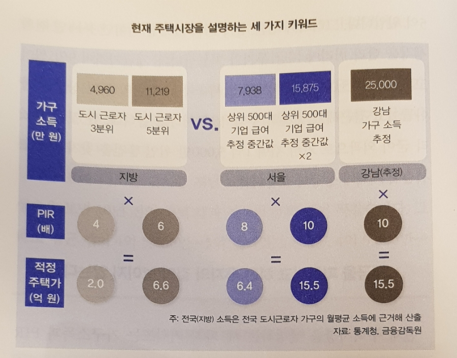 배운 점/세금을 피하려고 하면 투자의 길이 보이지 않는다_가구소득과 PIR(Price Income Ratio, 소득 대비 주택가격비율) 그리고 적정주택가격입니다. PIR은 다소 논란이 있지만 현재의 주택가격을 10으로 나눠보면 그곳에 사는 사람들의 소득이 대충 나옵니다.(26~29쪽) 이젠 세금에 대해 적극적인 자세로 공부해야 겠어요.