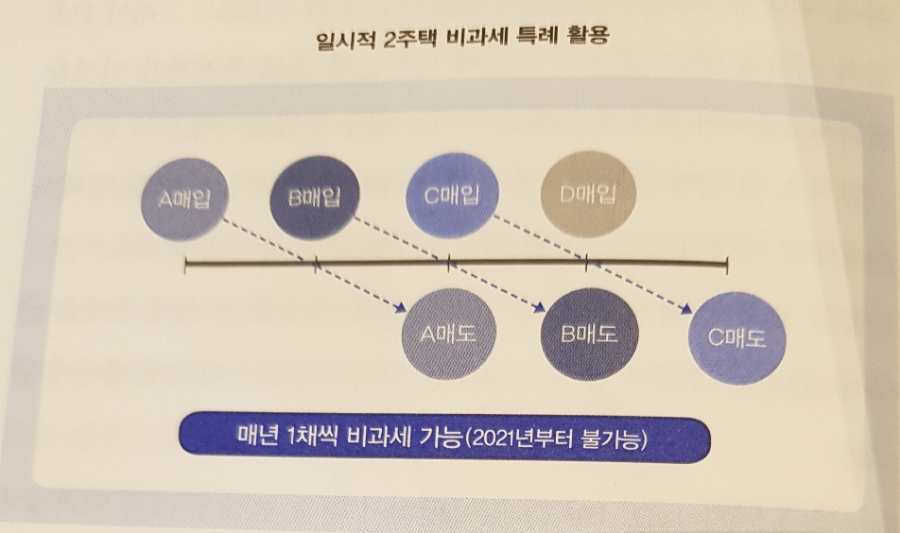 먼저 A를 사고 1년 후 B를 삽니다. 2년 뒤 A를 팔면 비과세입니다. 그리고 그것을 팔자마자 C를 사고 1년 후 B를 팔면 역시 비과세입니다. 그런 다음 D를 삽니다.(270~272쪽) '퐁당퐁당 비과세'를 재미있게 공부해야 겠어요.