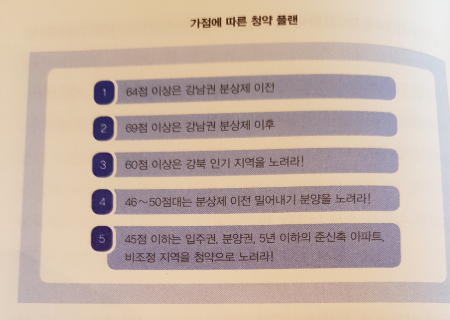 가용자금이 부족하고 무조건 청약으로 내 집 마련을 하거나 투자를 하고 싶다면 100퍼센트 가점제인 투기과열지구를 피해 비조정 지역을 노려보세요.(66~69쪽) 비조정 지역도 깊이 파고들어야 겠어요.