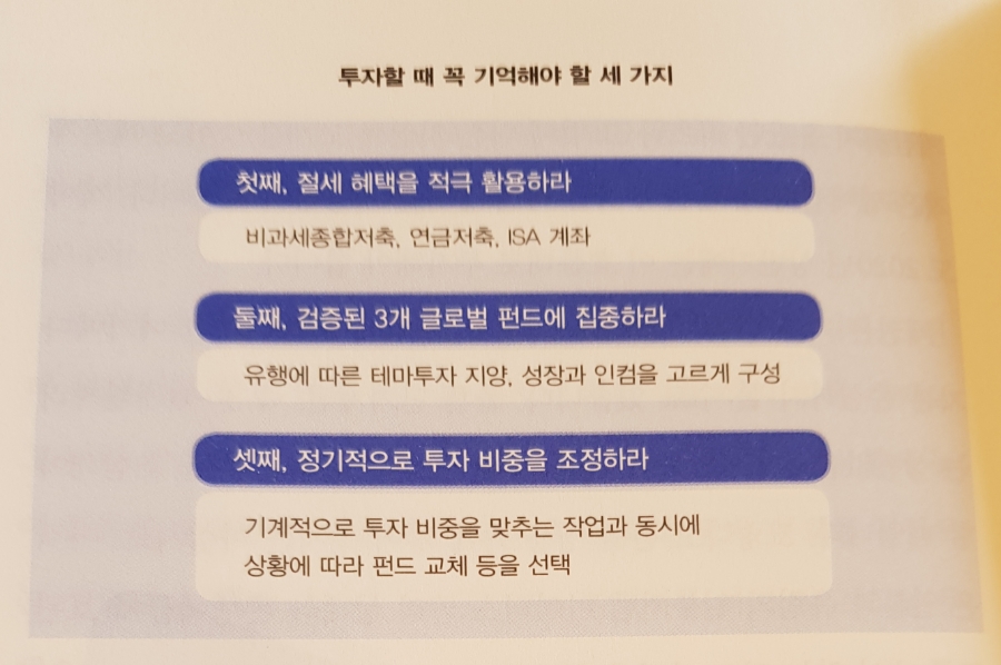 셋째_정기적으로 투자 비중을 조정하십시오. 즉, '3개월마다 리밸런싱해서 다시 3-3-3-1로 맞춘다'는 식으로 원칙을 정해두고 무조건 지키는 것입니다.(328~331쪽) 투자할 때 기억해야 할 세 가지를 지켜야 겠어요.