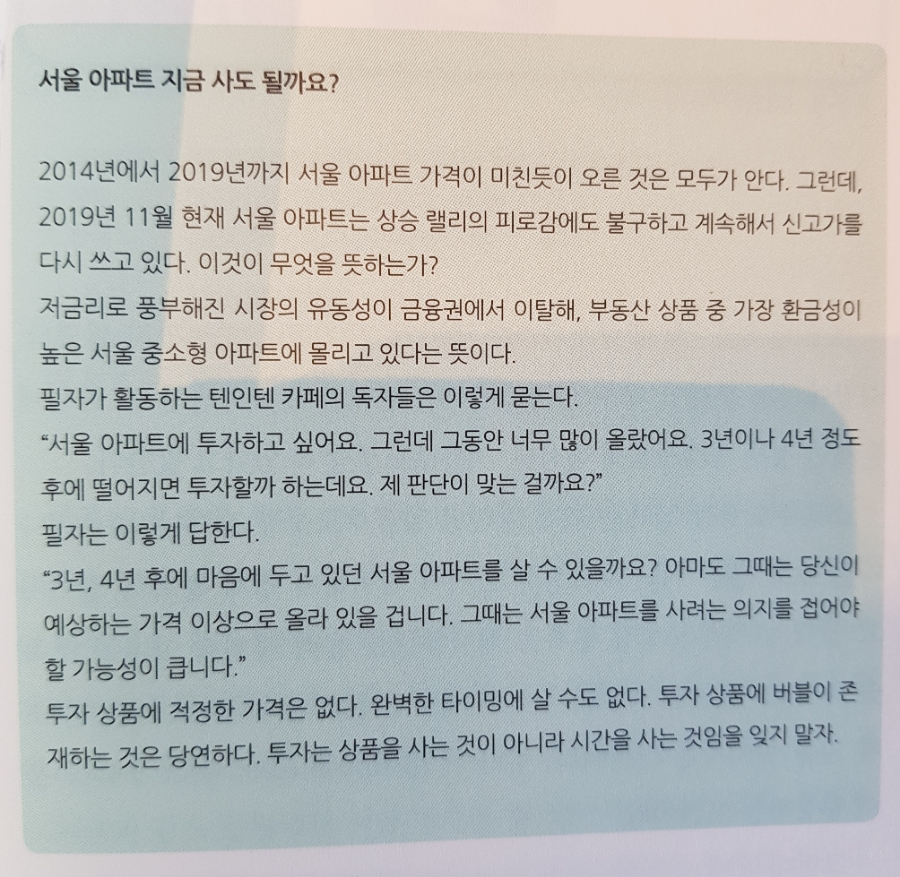 투자는 돈이 모이고 사람이 모이는 곳에 하는 것이 기본이다.(212쪽) 미래 가치가 기대되는 경기도 동남권 지역 아파트에 투자해야 겠어요.