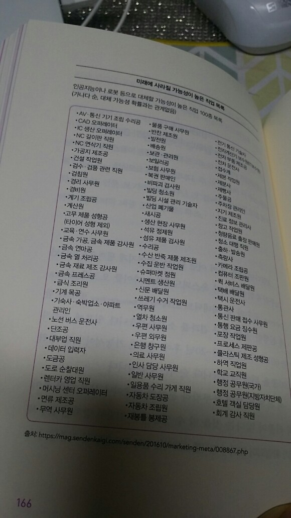 미래에 사라질수있는 직업들의 목록이랍니다.