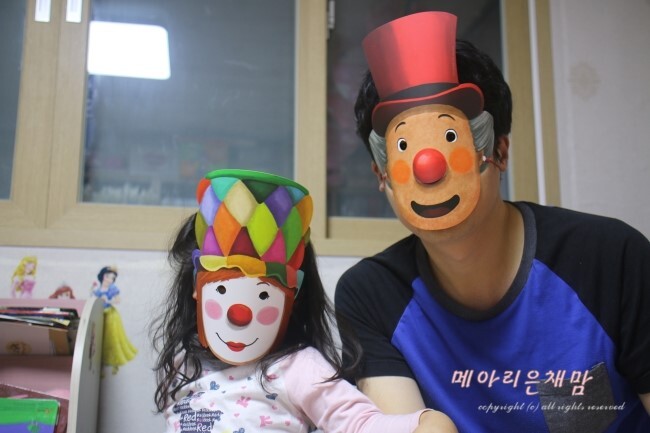 아빠, 엄마가 우선 피에로 가면을 써봤는데요 ㅎㅎㅎ