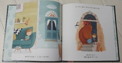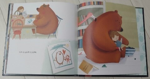 이제 곰과 항상 함께 하게 된 소년. 이제 그림그리기도 책읽기도 함께 하네요