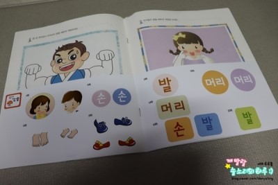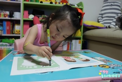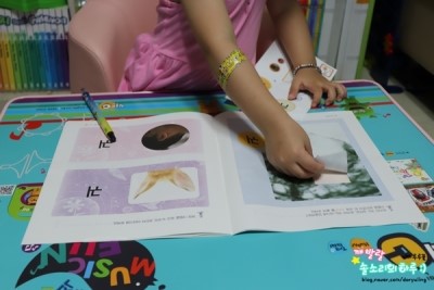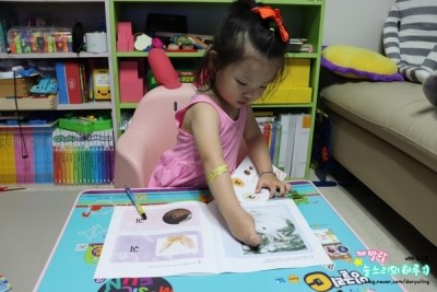 코라는 글씨를 스티커를 붙혀가며 익히는 솔이예요~