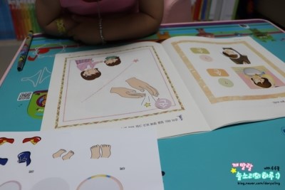 그 부분에 스티커를 붙히거나 색칠을 하도록 안내해주고있어요~