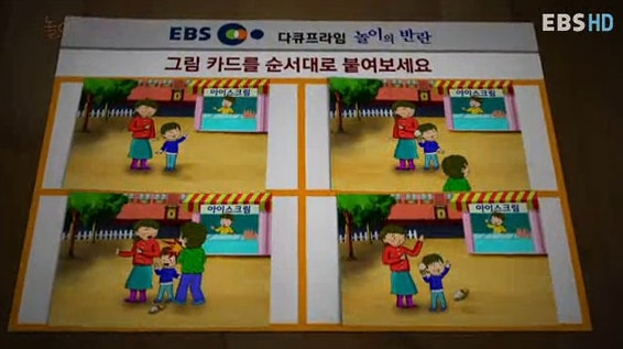 두번째는 이해력 테스트로 아래 4장의 그림카드를 보고 이야기 순서대로 배치하는 것이었다.