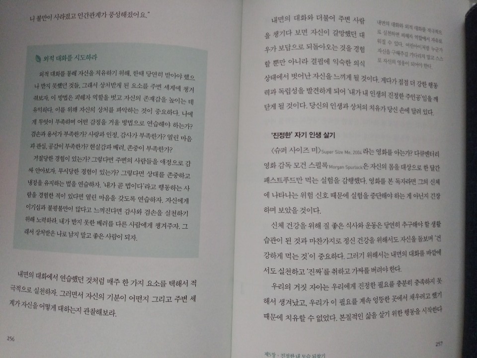 사실 우리 대부분은 '그냥' 사는 데 너무 오랫동안 익숙해져 있어서 직장이나 일상의 갈등, 혹은 건강문제 등 인생의 막다른 길과 마주치지 않는 한 자신과의 관계를 신경쓰지 않는다. -21p