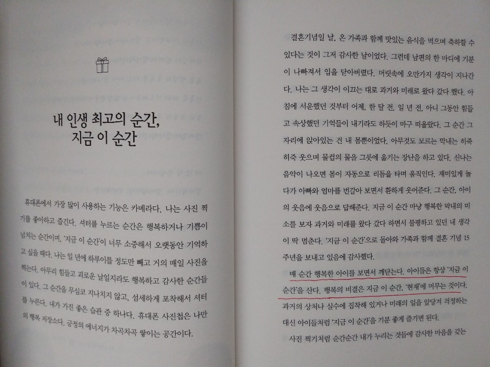 이 책에서 말하는 서른과 마흔 사이는 아니지만 인생의 중반까지 지나온 지금 여기는 분명 나를 돌아보고 점검할 필요가 있는 시기라고 여겨진다. 나 자신의 거짓자아를 잘 달래어 내보내고 진짜 자아가 힘을 발휘할 수 있도록 해야 하는 시점에 잘 만난 책인 것 같다. 아울러 내 아이에게 엄마로서 내 아이가 거짓자아에 가려 힘든 삶을 살아가지 않도록 있는 그대로의 모습으로 잘 살아갈 수 있도록 아이들 존재 자체를 사랑할 수 있어야 하는 이유를 다시 한 번 절실히 깨달는다.
