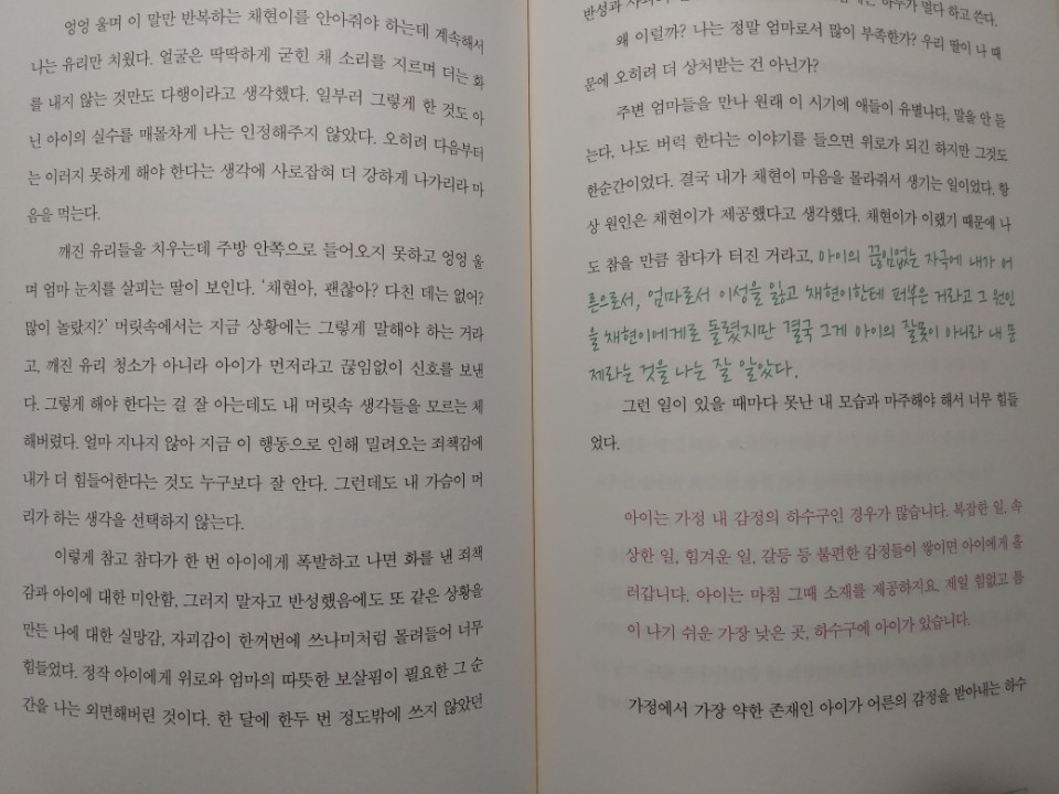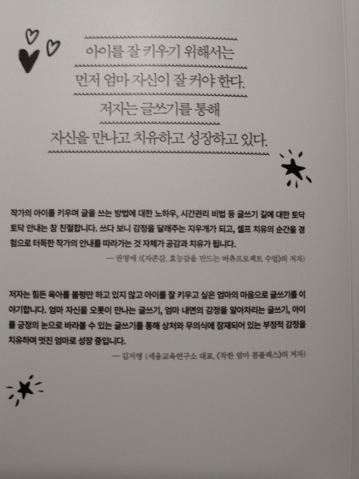 책을 읽어 나가면서 나의 자존감과 나의 자신감이 어디쯤 있는지 나를 객관적으로 바라볼 소중한 시간을 접할 수 있었다. 그리고 한 편, 칭찬을 대하는 태도에 대해서는 어려서부터 익숙해져 온 우리 문화의 겸손이라는 것에서 벗어나 기꺼이 진심으로 받아들일 수 있는 계기가 되기도 했다.