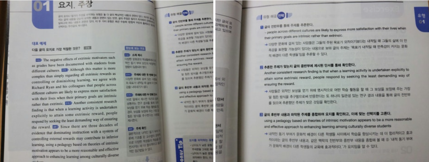 지문독해를 하면서 가장 중요한 것이 주제의 추론이다. 주제를 명확히 알지 못하면 5지선다에서 정확한 답을 찾기 어렵다. 유형편은 내신 서술형 문항이 포함된 고난도 문항을 통해 수시전형을 원하는 학생의 학습욕구도 충족하도록 구성하였다.