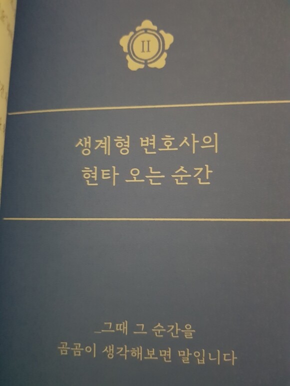 직장인으로서 겪는 현실 자각의 순간들을 털어놓은 2장 ‘생계형 변호사의 현타 오는 순간’,