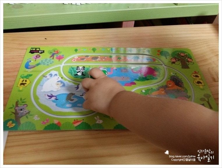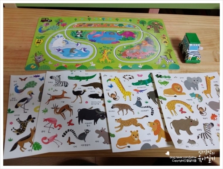사파리월드를 달리는 자동차를 몇번 보더니 바로 스티커 붙이기 돌입!!!