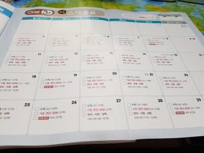 국어 사회 과학 수학까지 매일 매일 스케줄표가 짜있어서 공부한 날짜를