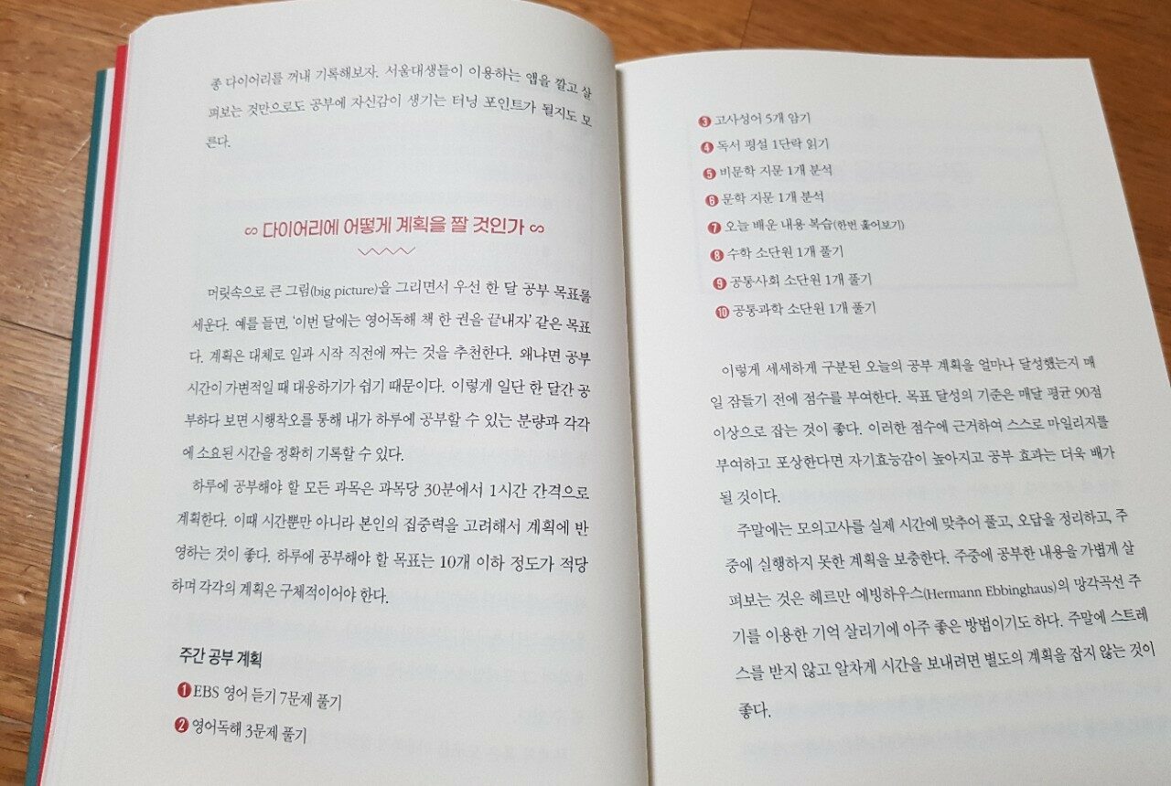서울대생들의 공부계획을 잘 세우는 방법부터 플래너를 이용해서 추천해주는 방식들을 살펴볼 수 있었어요.