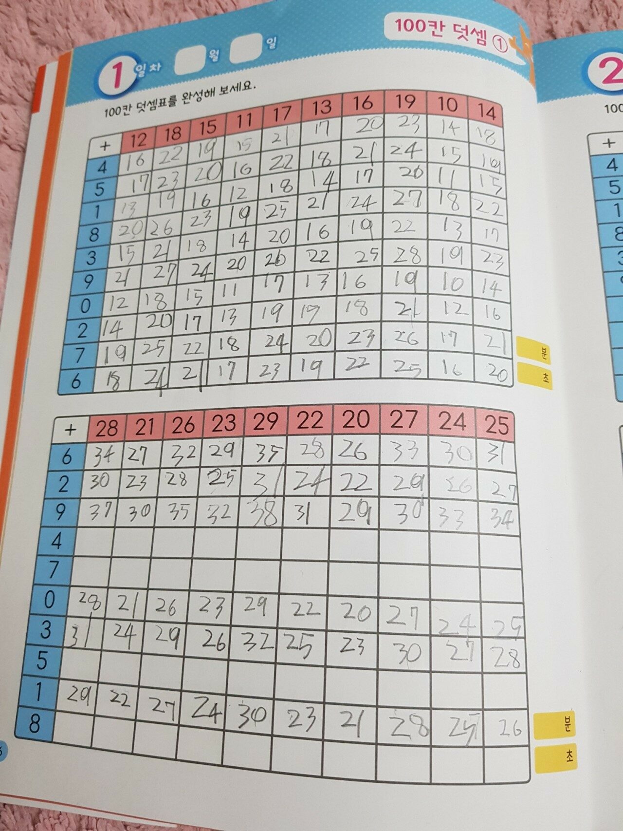 처음에 아이가 100칸을 보고는 어찌해야할지 모른다고 하더라구요. 하지만 방법을 한번 알려주니 바로 풀더라구요.