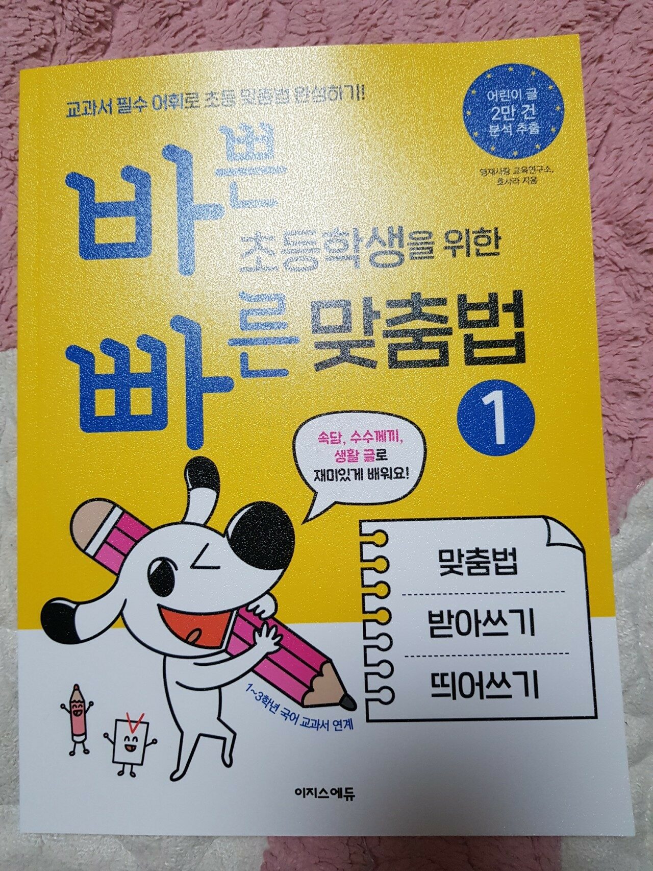 이지스에듀의 초등 맞춤법과 받아쓰기 및 띄어쓰기 활동 교재에요.