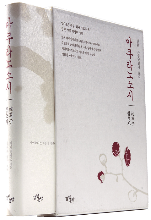 일본의 옛글을 소개한 김에 하나 더. 11세기 일본 궁정에서 천황비를 모시던 궁녀 세이쇼나곤(淸少納言)이 쓴 일본 고전 수필의 효시이자 백미, <마쿠라노소시>다. 마쿠라노소시의 한자 침초자(枕草子)에서 침은 베개이고 초자는 묶은 책을 뜻하니 ‘베갯머리 책’이 되는 셈. 피터 그리너웨이 감독의 <필로우 북>이 <마쿠라노소시>를 차용한 것은 널리 알려져 있다.