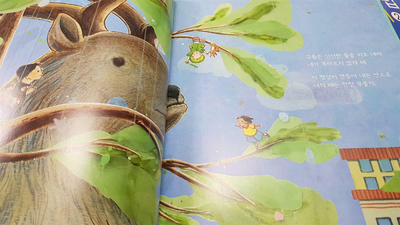 새와 물고기 나무와 하늘. 그 안에서 아이들이 어우러저 놀고있는 모습이 너무나 아름다웠어요. 일부러 꾸미지 않아도 자연이 주는 푸근함과 그 색감은 더없이 아름다워요.