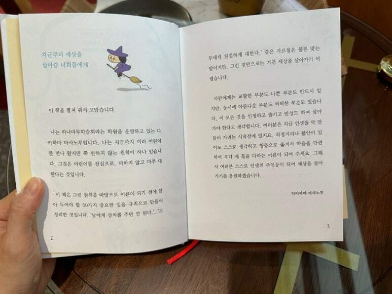 한국에는 이 책이 먼저 번역되어 출간되었지만, 작가의 맺는 말을 읽어보면 이건 2편이라고 한다. 아이는 책을 다 읽고 나서 1편은 왜 없어요? 라고 했는데, 언젠가 1편도 읽어볼 수 있었으면 좋겠다. "자신을 갖고 순수하고 진지하게 꿈을 펼치세요, 여러분은 반드시 '제 몫을 다하는 어른'이 될 거예요,"라고 응원하는 작가의 말이 나에게도 위로가 되었다. 50개의 규칙을 틈틈이 읽어보며 좀 더 순수하고 진지하게, 제 몫을 다하는, 나에게 충실한 어른이 되어야겠다.
