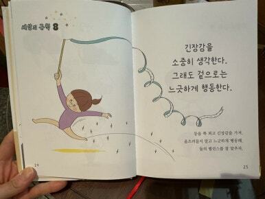 잘하고 싶은 마음이 앞서, 긴장하고 떠는 아이의 모습. 그 긴장감을 어떻게 해소해줄까 고민하다가 늘 말이 길어지곤 한다. 잘하고 싶다고 생각만 하면 안돼, 노력을 해야지. 그렇다고 "나는 잘 못하는데, 어떻하지? 진짜 못하면 어떻하지?"라고 자꾸 생각하고 말하는 것은 우주에 대고 "나는 결국 못할거야."라고 메아리를 보내는 것이라고 이야기 해준다. 그럼 조금은 용기를 내는 표정이 보이니까. 그런데 이 장면을 읽으면 조금 더 용기를 내지 않을까 기대해본다. 긴장감이 반드시 나쁜 것이 아니라는, 그리고 그 안에서도 느긋하게 행동하며 밸런스를 맞추는 것도 그 상황을 즐길 수 있는 방법이라는 것을 알게 되면 좋겠다.