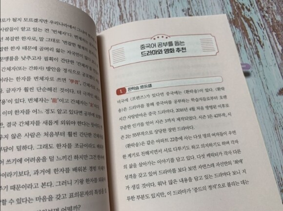 저자는 중국어 공부에 도움이 되는 드라마와 영화를 추천해준다.
