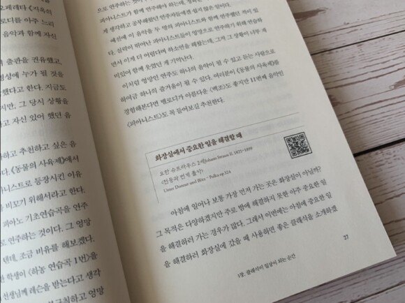 이 책은 바로 클래식을 들어볼 수 있도록 QR코드가 담겨있다.