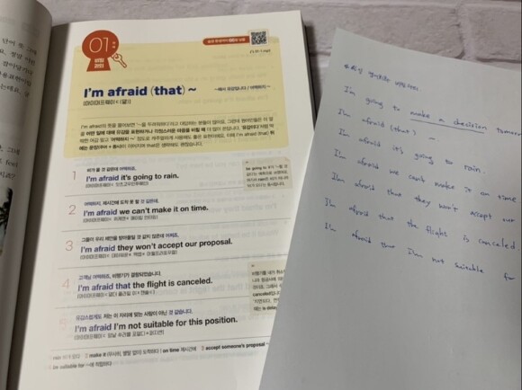첫 번째 비밀과외는 I'm afraid (that)~ 패턴에 대해 알려주고 있다.