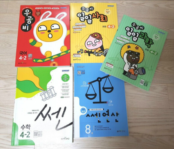 국어, 사회, 과학, 연산 문제집을 준비하여