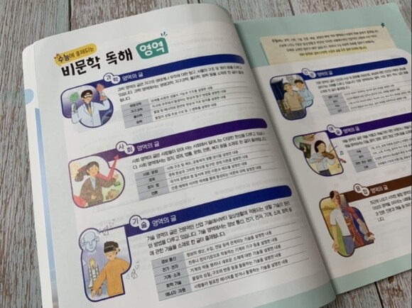 여섯 가지 영역에서 비문학 문제가 출제되고 있어요.
