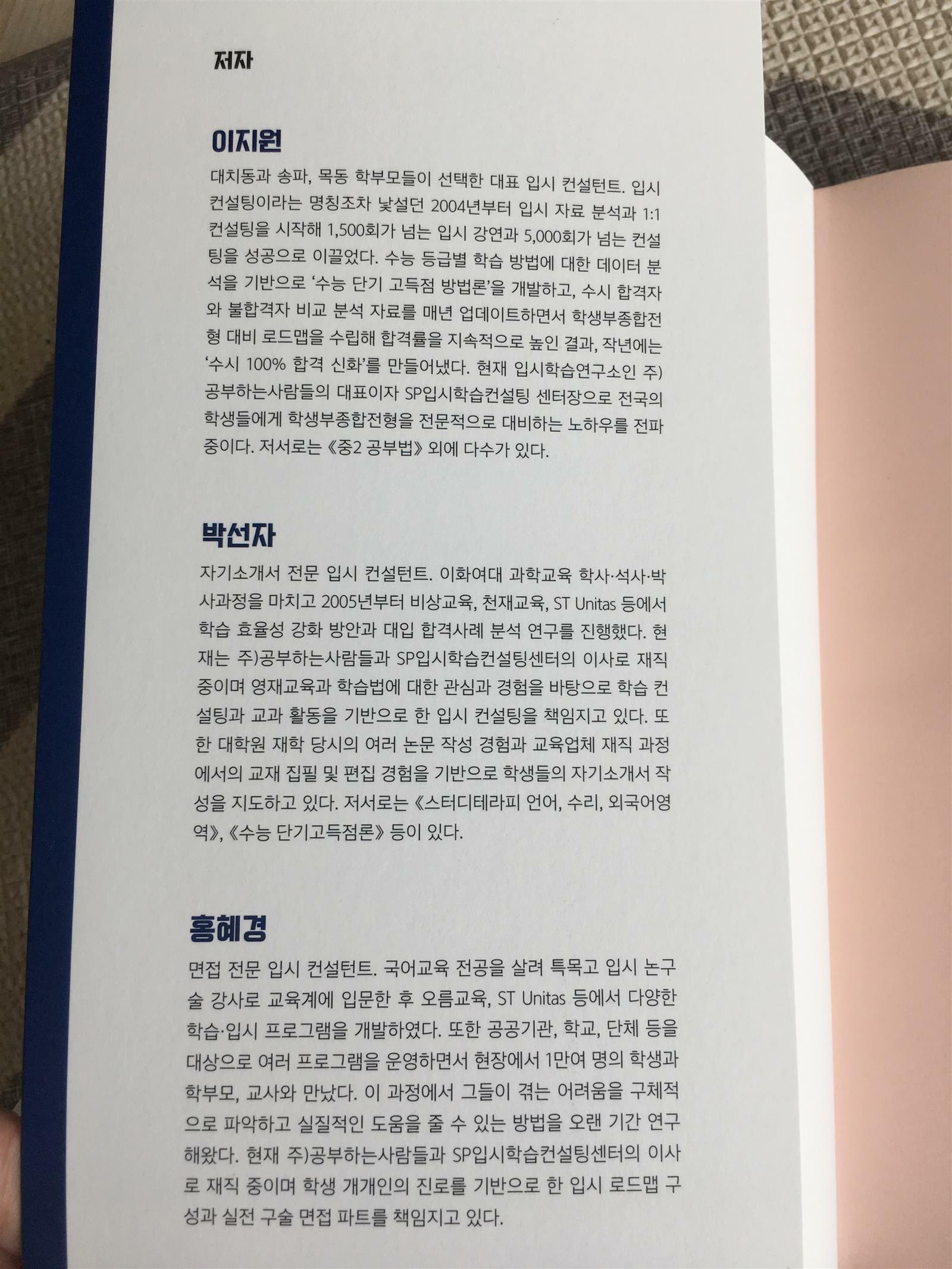 입시 컨설턴트의 조언이 가득하고,