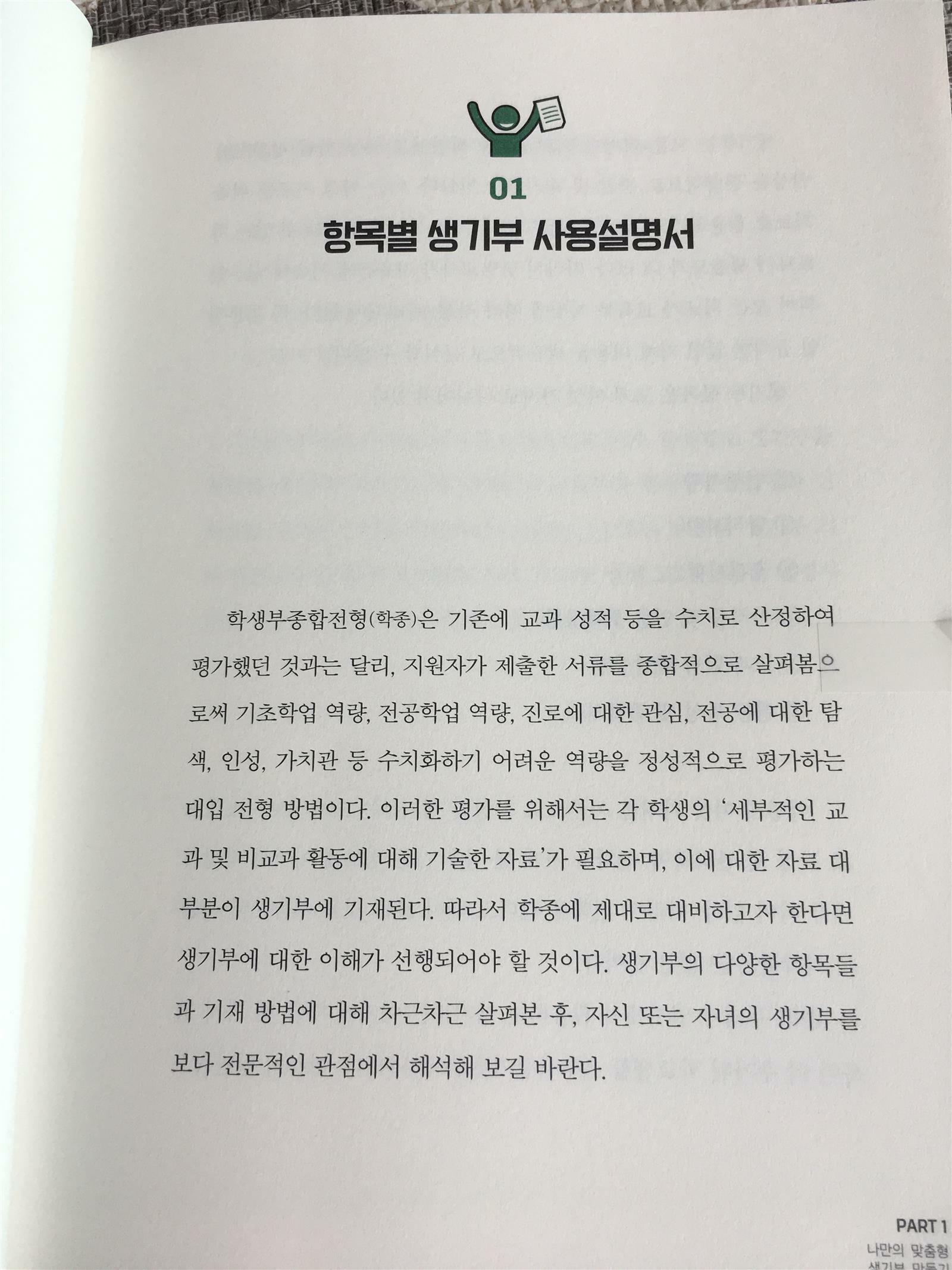 생기부에 기재되는 내용과 준비해야할 부분들을 자세히 알려주어 매우 유용하다.