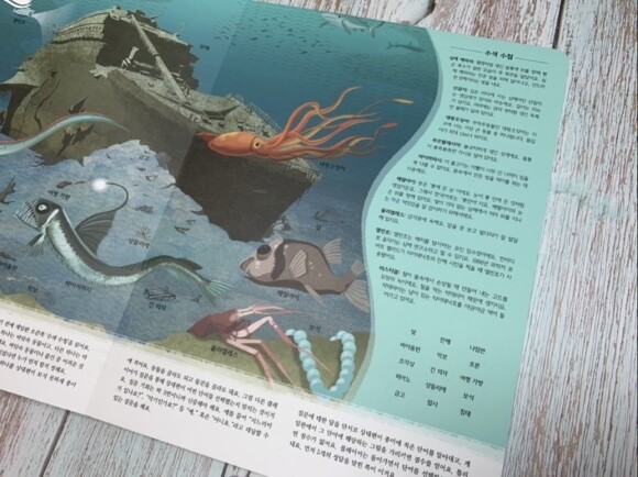 수색 수첩에 적힌 바닷속 동물과 바다에 빠진 물건을