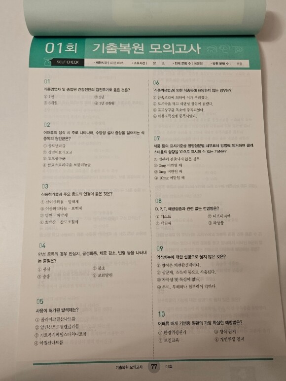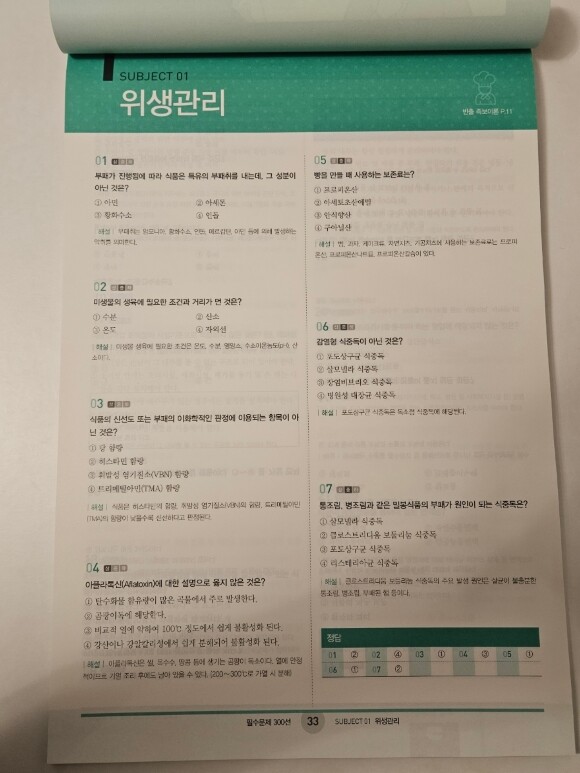 *한식, 양식, 중식, 일식, 복어 공통 출제범위에 해당되는 문제만 제공됩니다.