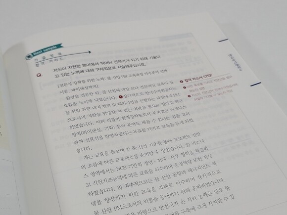 직업기초능력 10가지 영역의 내용을 파악하고, 각 영역을 기반으로 기출된 자소서 항목과 ‘Best sample’이 있는데요.