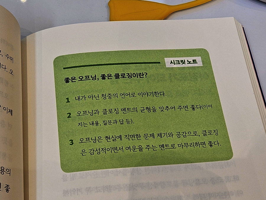 2. 오프닝과 클로징 켄트의 균형을 맞추어 주면 좋다(이어지는 내용, 질문과 답 등)