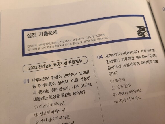 공기업 상식 시험에는 객관식이 주로 출제되기 때문에 실전을 치르듯 정답을 고르는 연습을 해야 하는거 아시죠?