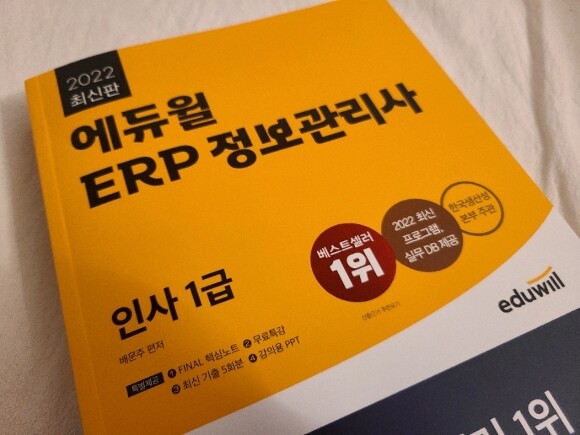 현재 경리로 근무중인 제가 에듀윌 ERP 정보관리사 인사 1급 교재에 대해 소개해드리려고 합니다.