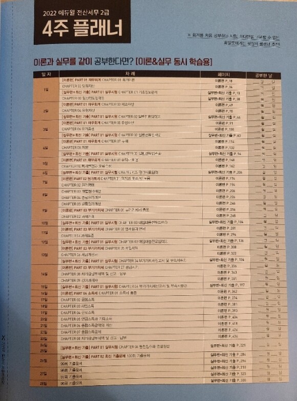 회알못을 위한 플래너가 있어 공부할때 해당 플래너를 참고해서 계획적으로 공부할 수 있어 좋은 것 같아요! 잘라서 책갈피처럼 활용을 할 수 있더라구요!