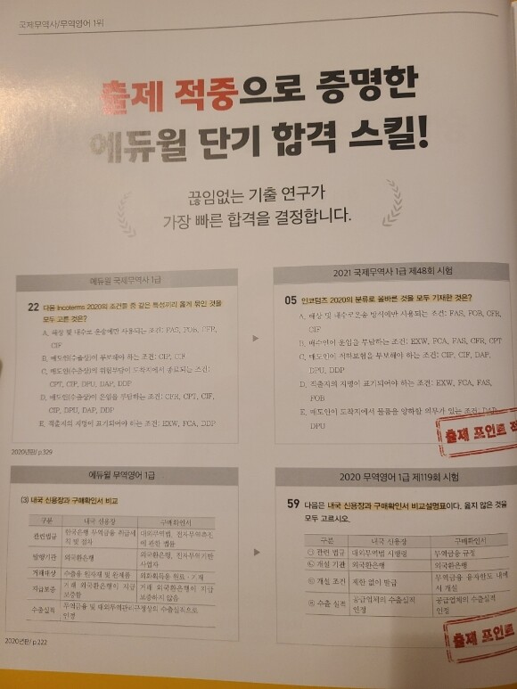 에듀윌에서 기출문제를 냈는데 출제 포인트를 정확하게 맞췄지 뭐에요!