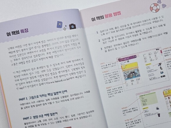 이 책은 여행자의 필수품이 될 수 있도록 하기 위해 현지에서 꼭 필요한 어휘와 필수 구문, 대화 등이 나와요.