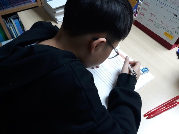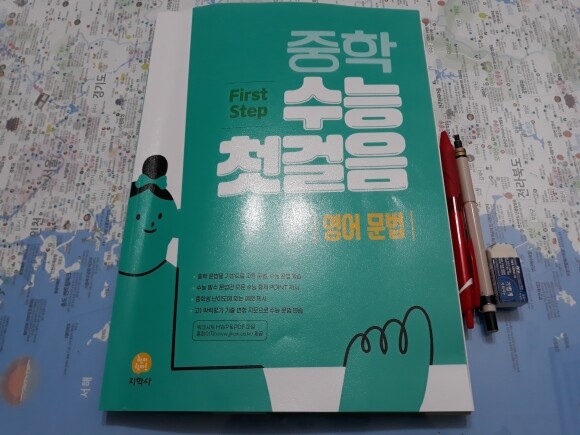 영어 공부를 하고 있는 형아 오리가작년 한 해, 중등 내신 시험 준비에서영어 문법 학습에 어려움을 호소했어요.엄마 오리도 영어 무식자라 가르쳐 줄 수도 없어서사교육을 고려해야하나 고민했지만,이번 겨울방학에 좋은 교재를 선택해서다시한번 자학자습으로영문법 집중 학습을 하기로 했지요.그리하여앞서가는 중학생을 위한 수능 영문법의 첫걸음지학사 <중학 수능 첫걸음 영어문법> 교재를 만났습니다^^