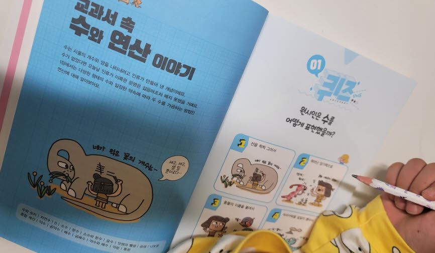 초딩 교과서와 연결하여 개념풀이가 되니 수학의 고수가 되는거 어렵지 않습니다. 수학을 배우는데 있어서도 개념의 속뜻을 파악하면서 문해력을 함께 키우는거 풀고 싶은 퀴즈 알고 싶은 수학을 통해서 한단계 성장할 수 있을것 같네요.