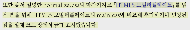 이 책은 '어비_송태민'님의 최신 책이다. 그렇다 보니 이전 'HTML5 보일러플레이트'와 연관되는 부분을 수시로 꼬집어 주고 있다.